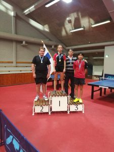 Kaksinpeleissä Valtteri hävisi puolivälierässä Joensuun Aku Kastiselle, ja myös Woobin sai todeta Akun paremmiksi semifinaalissa lukemin 3-1. Luokan mestariksi pelasi järjestähäseura PT-Espoon Alisa Sinishin.